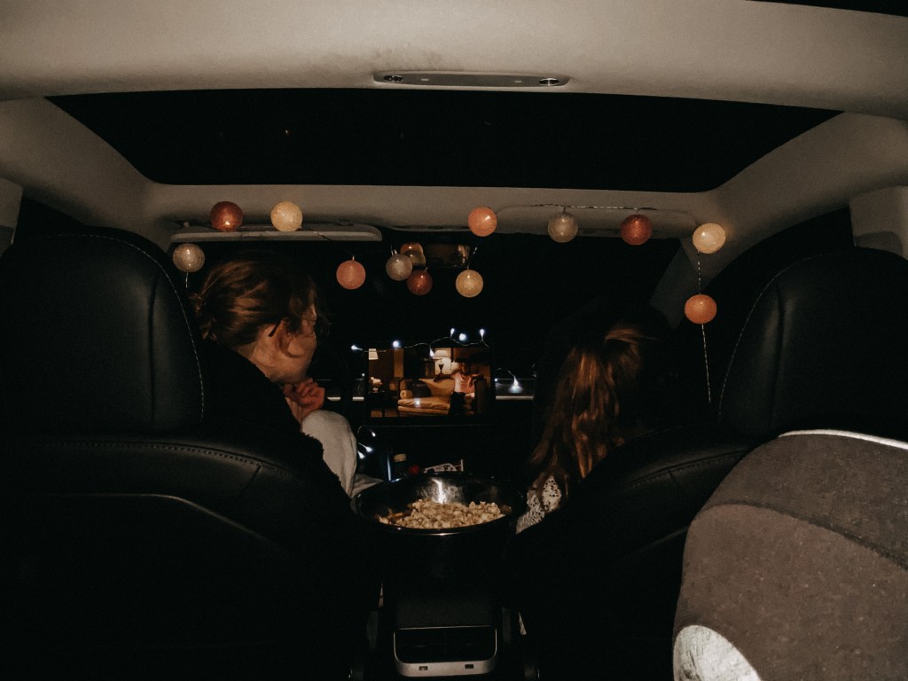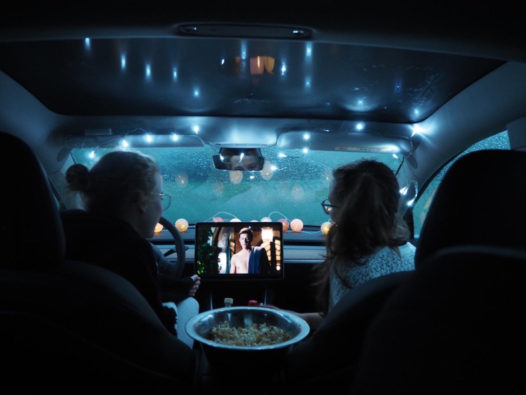 Auch ohne extra in ein Autokino fahren zu müssen, kann man sich im Auto einen schönen Abend machen. Während der ein oder andere eh schon einmal im Autokino war, bin ich mir sicher, dass sich die wenigsten einfach ins Auto setzen würden, um einen Film zu schauen. Dabei kann es ziemlich einfach sein. Eine Schale Popcorn machen, die Kuschelsocken anziehen, die Kuscheldecke mitnehmen, hier und da noch den einen oder anderen Snack und zum Schluss noch ein paar Lichterketten, den Film und die beste Freundin. Man kann mit dem Auto vor der Haustür stehen bleiben oder auch zum nächsten Feld fahren, damit man noch dazu eine schöne Sicht nach draußen hat.