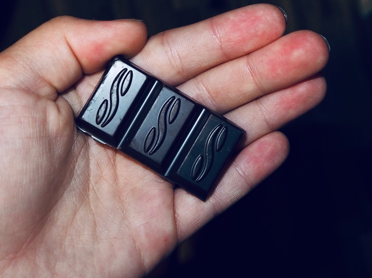 „Nach was schmeckt die Schokolade?“ Diese Frage war schon etwas schwieriger, aber ich beantworte nach langem Nachdenken auch diese.