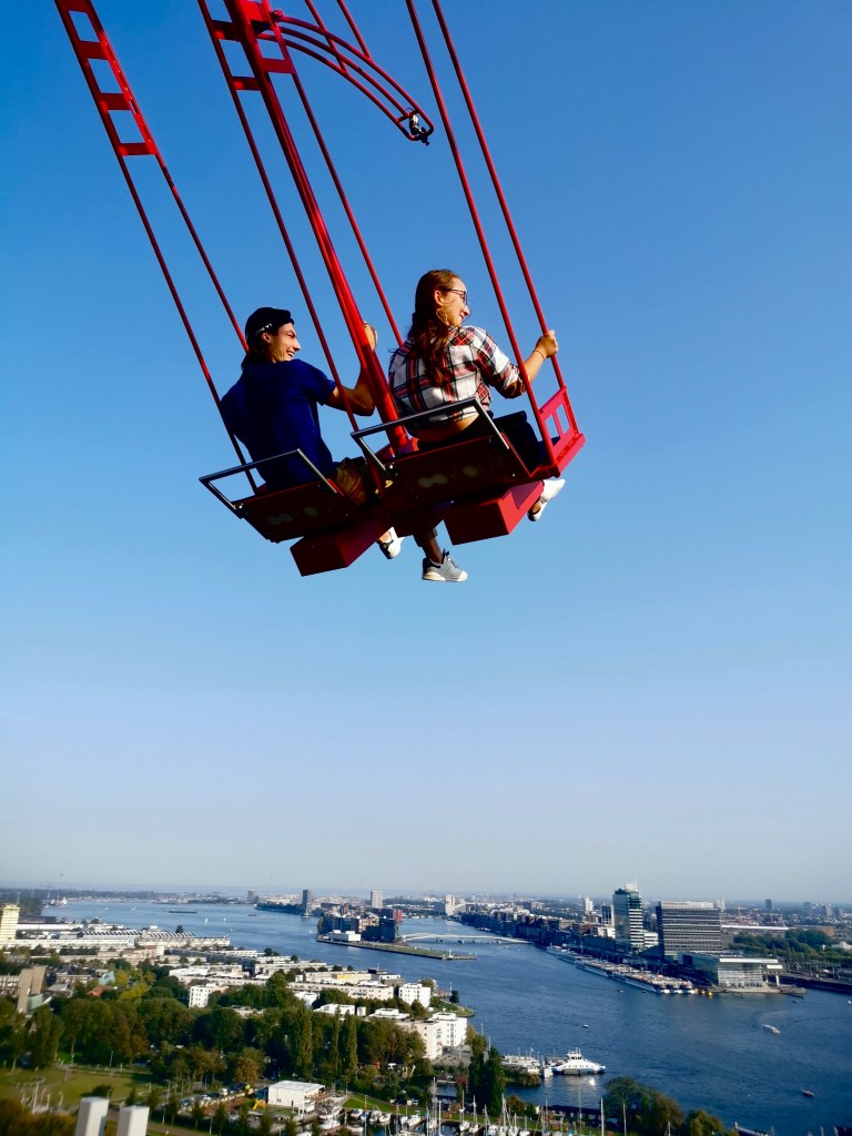 Der A´DAM Logout kann vom Hauptbahnhof aus in wenigen Minuten mit dem Schiff erreicht werden. In einem Aufzug mit Lichteffekten wird man in die Höhe gebracht, auf eine Dachterrasse mit einer wunderschönen Sicht auf Amsterdam. Außerdem kann man für 5€ mehr eine Minute lang auf der höchsten Schaukel Europas schaukeln, was äußerst beeindruckend ist. Tickets gibt es ab 12,50€ pro Person. Auf der Terrasse gibt es Sitzkissen, sowie eine Bar für Getränke.
