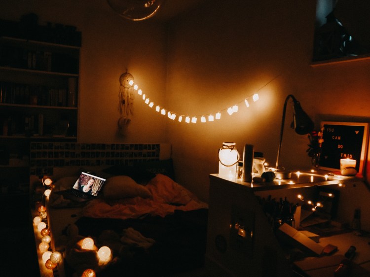Helle dein Zimmer auf! Klar, schwarz ist vielleicht edler, du magst die Farbe dunkelblau echt gern. Für mich hat sich herausgestellt, dass hellere Farben und warmes Licht sich auch besser auf meine Stimmung auswirken. Außerdem habe ich versucht Positivität in meinem Zimmer zu verbreiten, vielleicht hilft es bei dir auch?