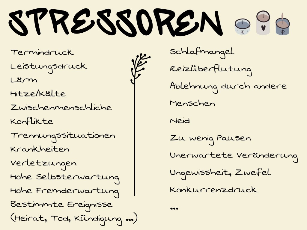 - Eigene Stressoren finden und Einstellung zu diesen ändern.