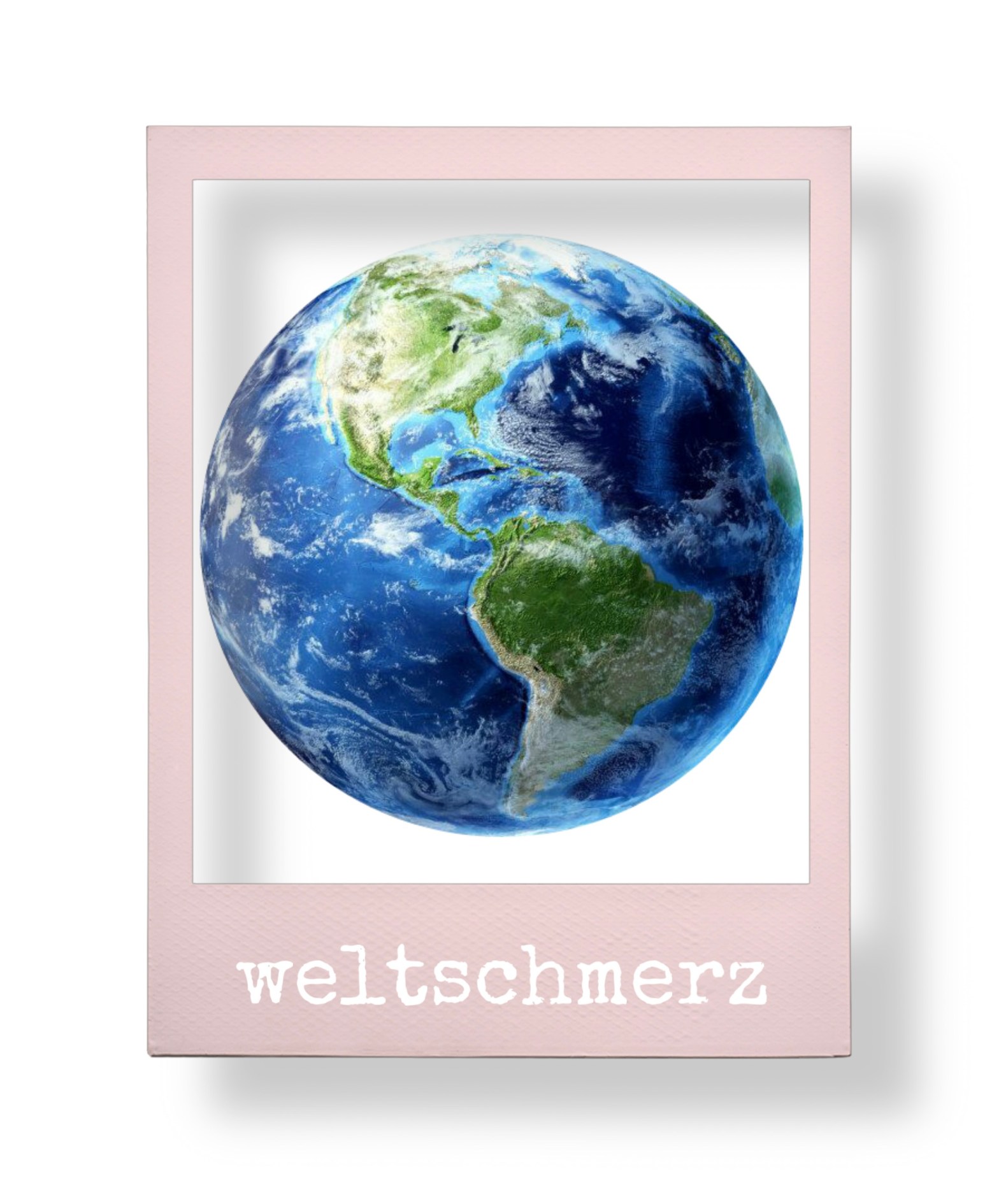 Weltschmerz hat etwas mit Erwartungen zu tun. Wenn sich die Welt nicht so entwickelt, wie man es sich vorstellt, kann man also Weltschmerz empfinden. Und in gewisser Weise gehört auch das Gefühl der Hilflosigkeit dazu. Gedanken wie Ich kann doch eh nichts bewegen, wie soll ich als einzelner Mensch etwas tun?, können dabei auftreten. Weltschmerz zieht einen runter. Weltschmerz kann Angst machen und auch Pessimismus auslösen, wie zum Beispiel durch den Klimawandel geht die Welt eh unter, da kann ich nichts mehr tun. Das wiederum führt zum Grübeln und Hoffnungslosigkeit, vielleicht auch zu Schlafstörungen, weil man das Grübeln nicht ablegen kann. Es ist ein Teufelskreis. Dieses Gefühl der Ohnmacht und Unzulänglichkeit könnte man als Weltschmerz bezeichnen. Wenn es schmerzt, was in der Welt passiert. Wenn es einen überwältigt und traurig macht. Ich habe schon oft Weltschmerz empfunden. Der Tipp von meiner Therapeutin: Es nicht an einen ranlassen. Aber so einfach ist das leider nicht.
