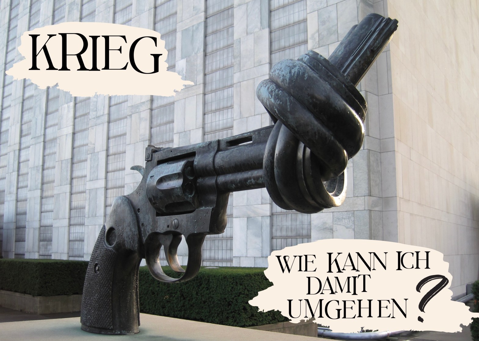 Dieses Denkmal steht vor der UN in New York. Als ich davor stand fand ich es einerseits beeindruckend, andererseits habe ich die Macht dieser Statue um Einiges unterschätzt. Heute ist mir erst bewusst geworden WIE mächtig dieses Zeichen ist. Krieg mochte für mich noch so utopisch klingen, am Ende war er doch näher als ich dachte.