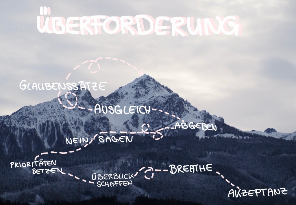 Ein extrem wichtiger Punkt. Ich schaffe das nicht, ich kann diese Aufgabe eh nicht, ich bin nicht gut genug, ich konnte das und das noch nie, ich bin so unfähig, aus mir wird nie was. Wir alle kennen diese negativen Glaubenssätze. Versuche dir gut zuzureden und neue positive Glaubenssätze zu etablieren, an die du selbst glauben kann. Auf gut deutsch: Rede dir Mut zu. Ich kann das schaffen. ich werde mein bestes geben. Mein bestes ist genug. Ich kann diese Herausforderung lösen. Ich mache alles Schritt für Schritt. Das ist so so wichtig und für mich die wichtigste Maßnahme gegen Überforderung.