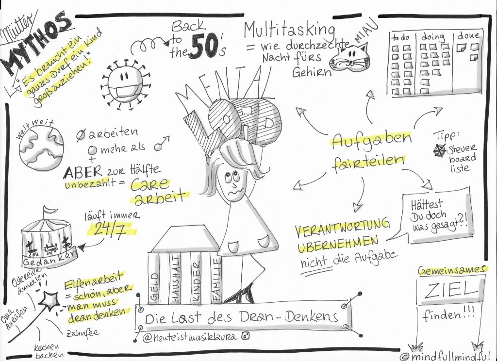 Was man nicht sieht kann man auch nicht machen. Mental Load ist etwas, das oft unbewusst abläuft und, dass man sowohl für sich als auch für andere sichtbar machen muss. Manchen Menschen ist gar nicht bewusst wie komplex eine Aufgabe sein kann. Wenn man also zu Zweit im Haushalt ist, kann es ein erster Schritt sein, das Thema anzusprechen und zu erläutern. Über diese ganzen kleinen unsichtbaren To Dos zu sprechen und sie für den anderen sichtbar zu machen.