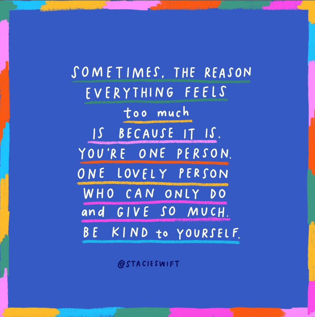Denke immer daran, dass deine Energie begrenzt ist. Deswegen ist es umso wichtiger, dass du dir gut überlegst, wie du deine Ressourcen einteilst und wie du deine Prioritäten setzt. Und vor allem: du kannst gar nicht alles schaffen und an alles denken! Sei also auch mit dir selbst nicht zu streng 🙂 Vielleicht kann dir das ein bisschen Druck nehmen.