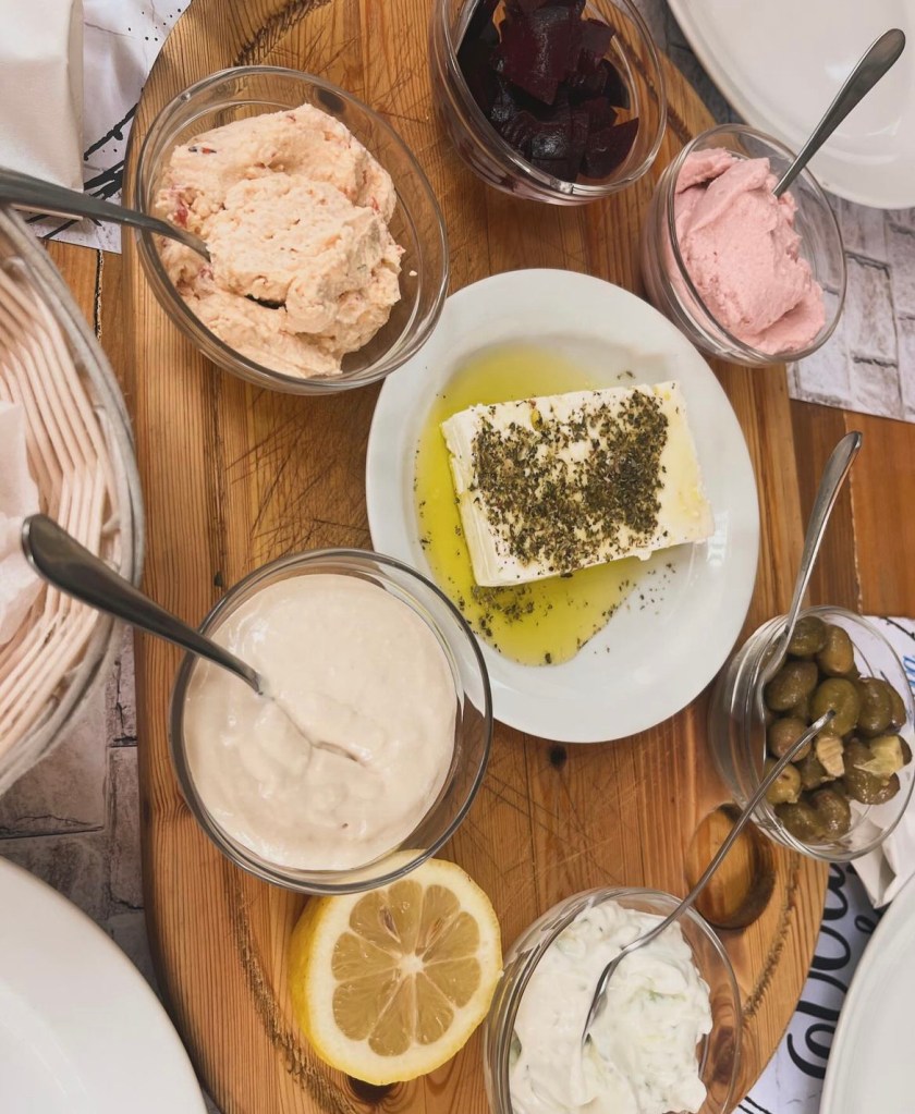 Meze ist ein traditionelles Gericht auf Zypern. Es gibt von allen kulinarischen Spezialitäten Zyperns ein bisschen (oder viiiieeeelll), sodass man sich durch alles durchprobieren kann. dazu gehören zum Beispiel Pita mit den unterschiedlichsten Dips, Fleisch- und Fischgerichte, aber auch Shashouka und andere leckere Sachen.