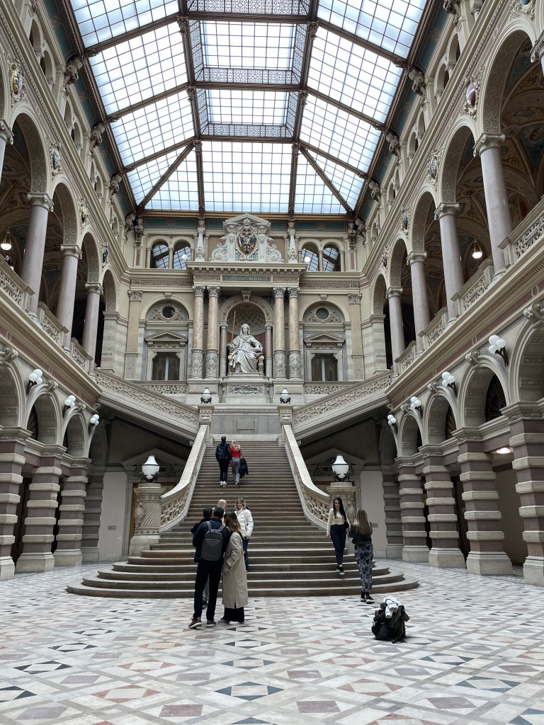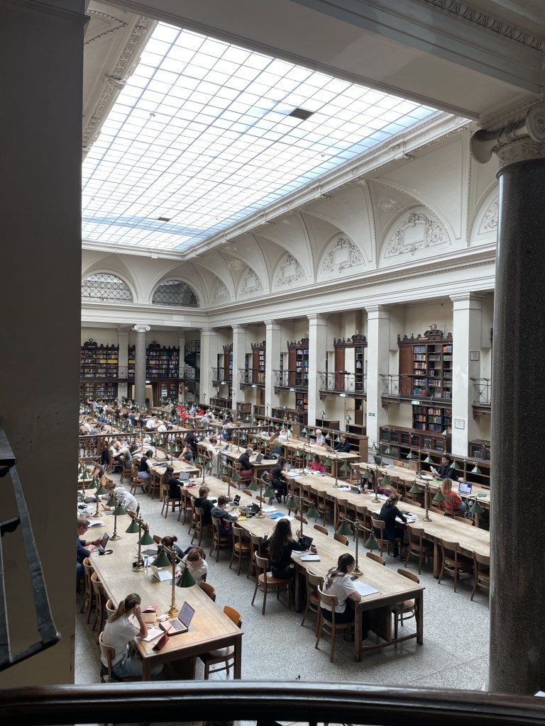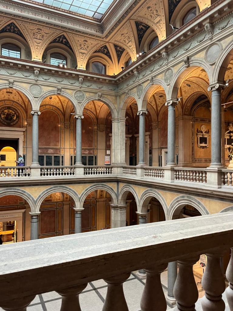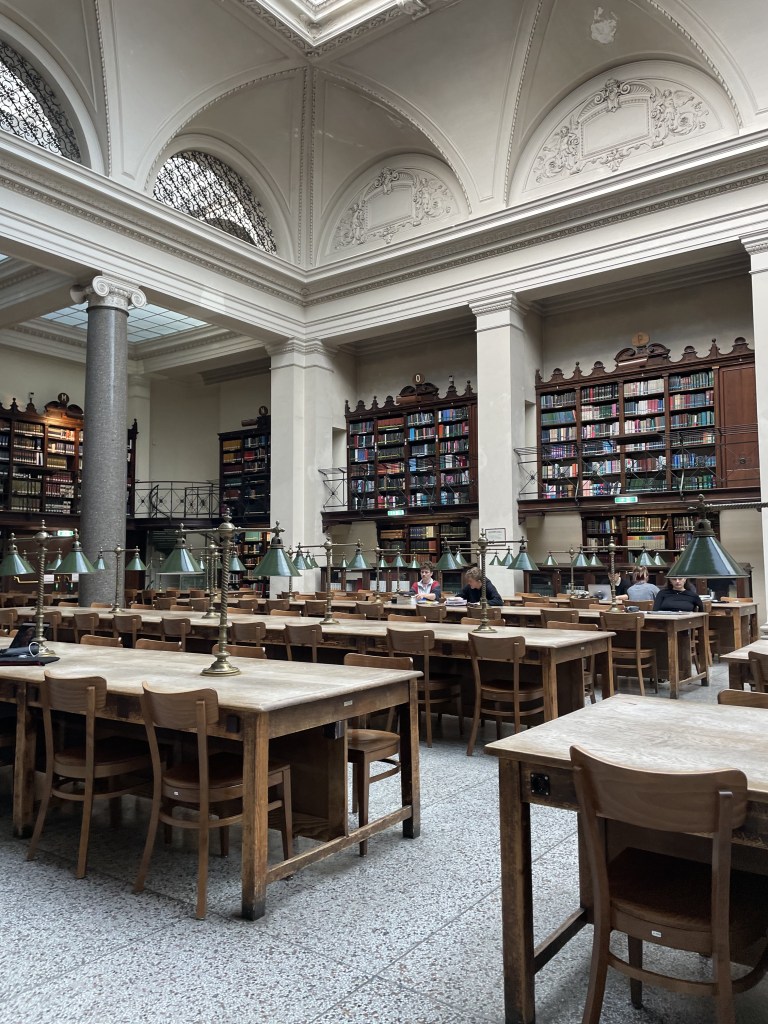 Auch um in diese Bib zu gehen musst du nicht (in Wien) studieren. Am Eingang des Museums solltest du all die Sachen, die du nicht brauchst im Spind lassen (auch Getränke) und nur die wichtigsten Sachen zum Lernen mitnehmen. Am Eingang des Museums kannst du sagen, dass du in den Lesesaal möchtest und wirst dann mit einem Bändchen durchgelassen. Das Gebäude ist wunderschön und lohnt sich unbedingt!